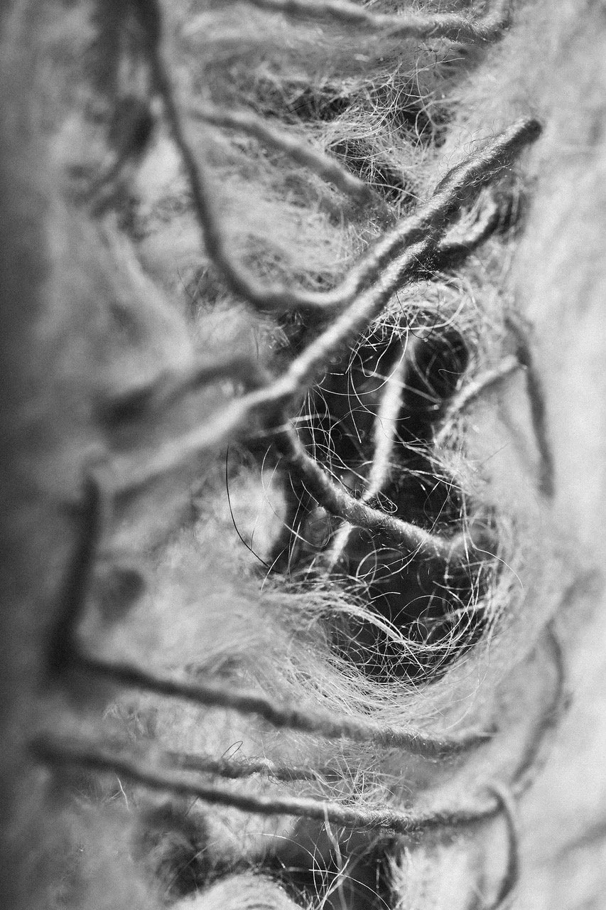 In mijn werk verken ik de menselijke behoefte aan warmte, veiligheid en verbinding, net als de baarmoeder als de oorspronkelijke sfeer; een symbool van samenleven. Met zijn zachtheid, veerkracht en tactiliteit stelt wol mij in staat om menselijke kwetsbaarheid en kracht uit te drukken in een wereld die behoefte heeft aan compassie en zorg.