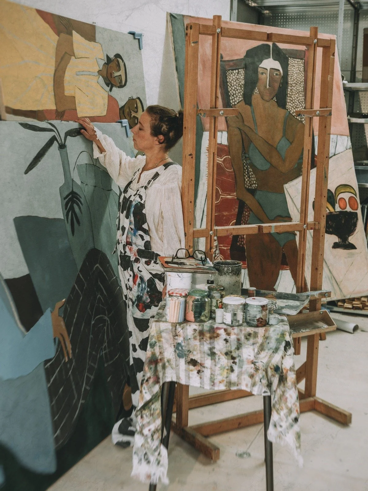 Als beeldend kunstenaar breng ik verloren en vergeten vrouwenverhalen tot leven en daag ik de door mannen gedomineerde geschiedschrijving uit, die vaak voorbijgaat aan de kruispunten van ras, klasse, gender en seksualiteit. Door deze 'HERstories' [persoonlijke en historische verhalen van vrouwen die geen stem kregen] te schilderen, werk ik aan een evenwichtiger en inclusiever begrip van het verleden. Mijn schilderijen zijn geen exacte reconstructies, maar interpretaties die verweven zijn met mijn eigen herinneringen en emoties, waardoor een dialoog ontstaat tussen verleden en heden.