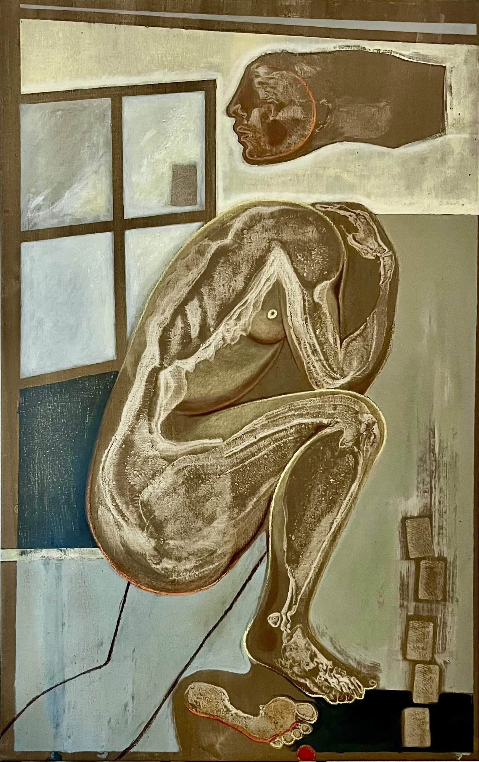 In mijn recente werk gebruik ik mijn lichaam zowel als onderwerp als instrument, waarbij ik bewegingen en gebaren rechtstreeks op het canvas documenteer. De sporen die ik achterlaat – organisch, direct en eenmalig - worden een visuele taal van verlies, loslaten en groei. In deze markeringen zie ik wat geweest is, wat leeft en wat mij terugroept, waardoor er als het ware een verbintenis ontstaat tussen mijn persoonlijke ervaring en de wereld om mij heen.