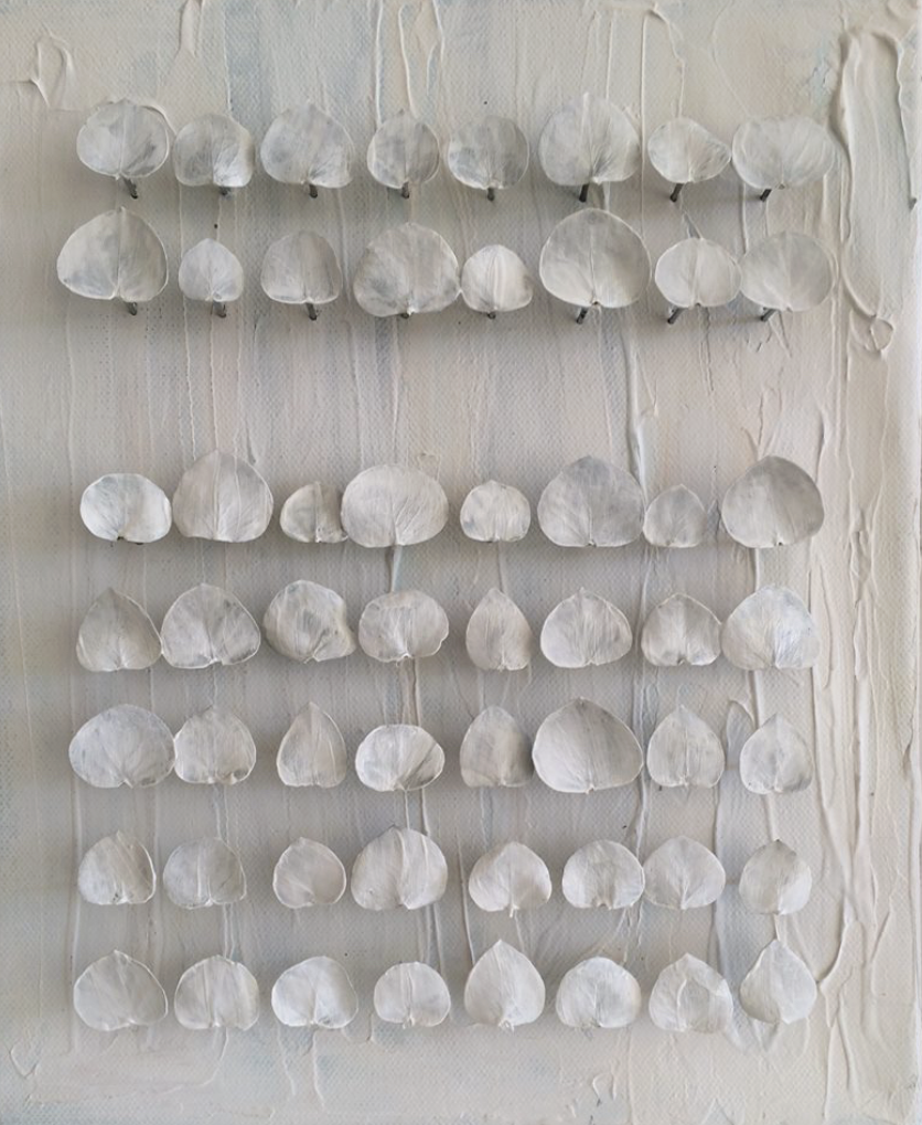 Wit, dat staat voor sereniteit, onschuld en dood, speelt een centrale rol in mijn praktijk. Door middel van licht, ruimte en reflectie breng ik materialen opnieuw tot leven, geef ik ze als het ware een tweede bestaan. Veel werken worden gepresenteerd in plexiglazen vitrines, een bewuste omlijsting die de dialoog tussen kwetsbaarheid en onoverwinnelijkheid, organisch en industrieel, versterkt.