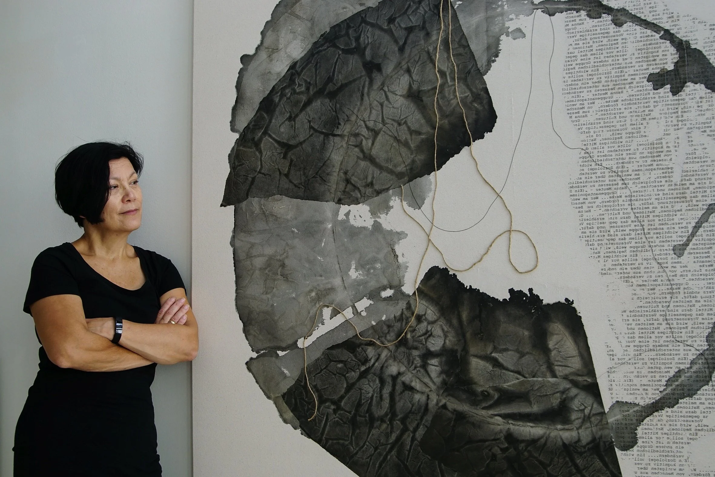Het vinden van balans tussen tegenpolen staat centraal in mijn proces. Ik combineer graag volheid en leegte, controle en spontaniteit, overvloed en eenvoud. Je ziet krachtige penseelstreken naast delicate lijnen, donkere inkt op licht, transparant papier. De materialen zelf (inkt, Chinees rijstpapier en collage) spelen een sleutelrol. Ik kies ze vanwege hun gevoeligheid en zuiverheid, en omdat ze me in staat stellen in lagen te werken.